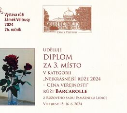 3. místo v kategorii Nejkrásnější růže 2024 - Cena veřejnosti, odrůda Barcarolle