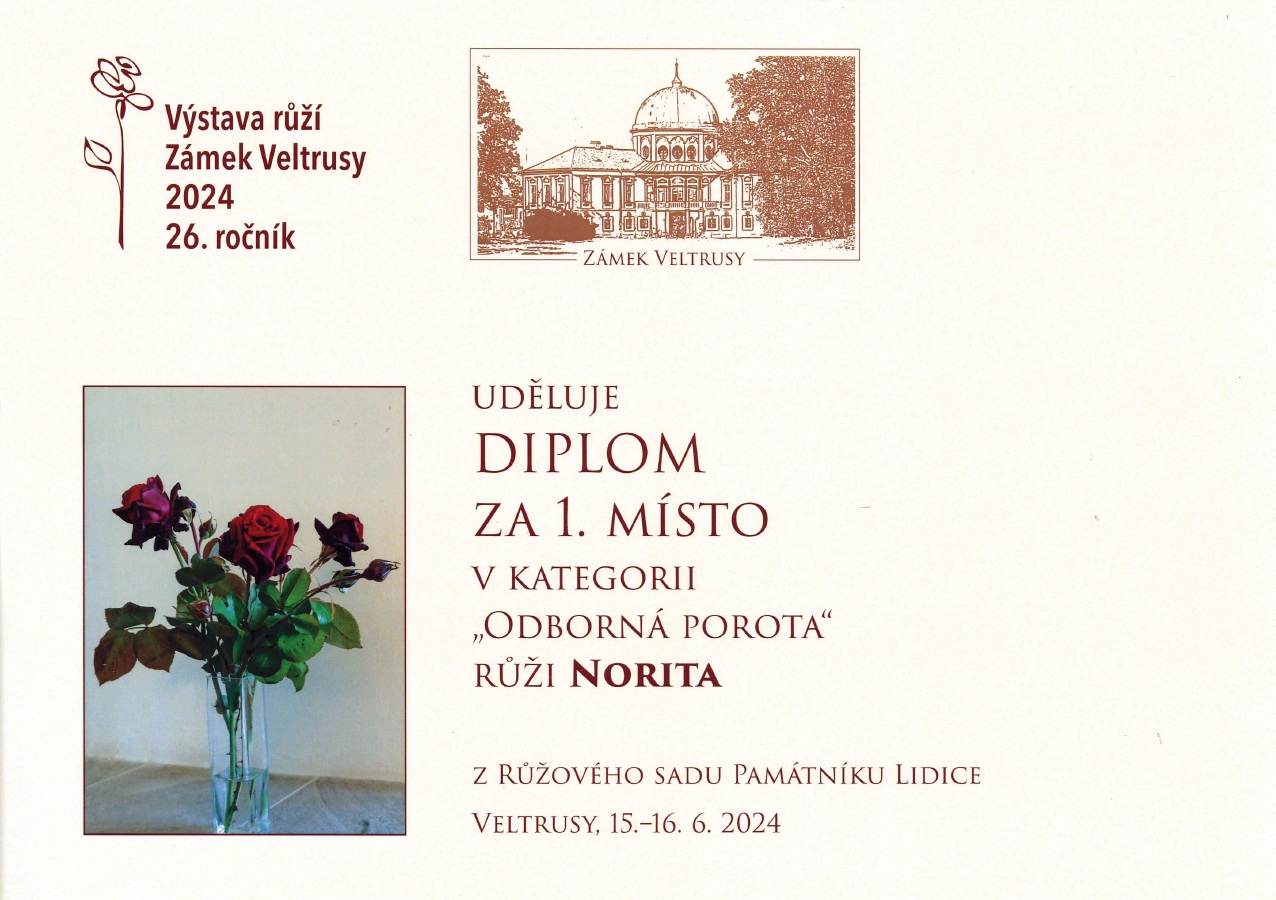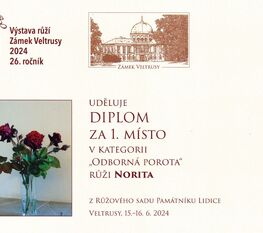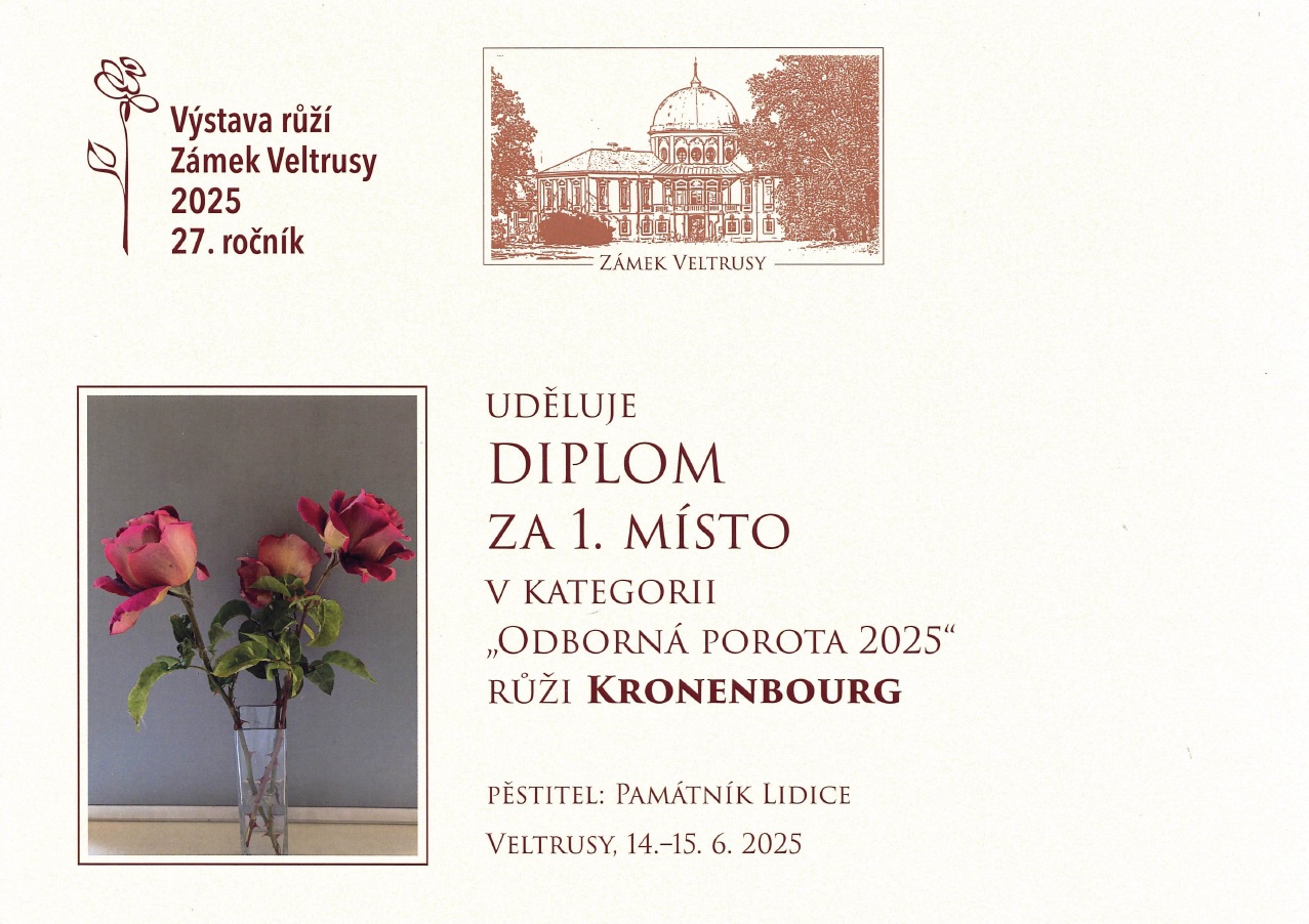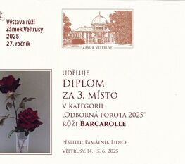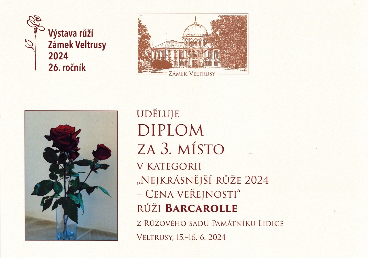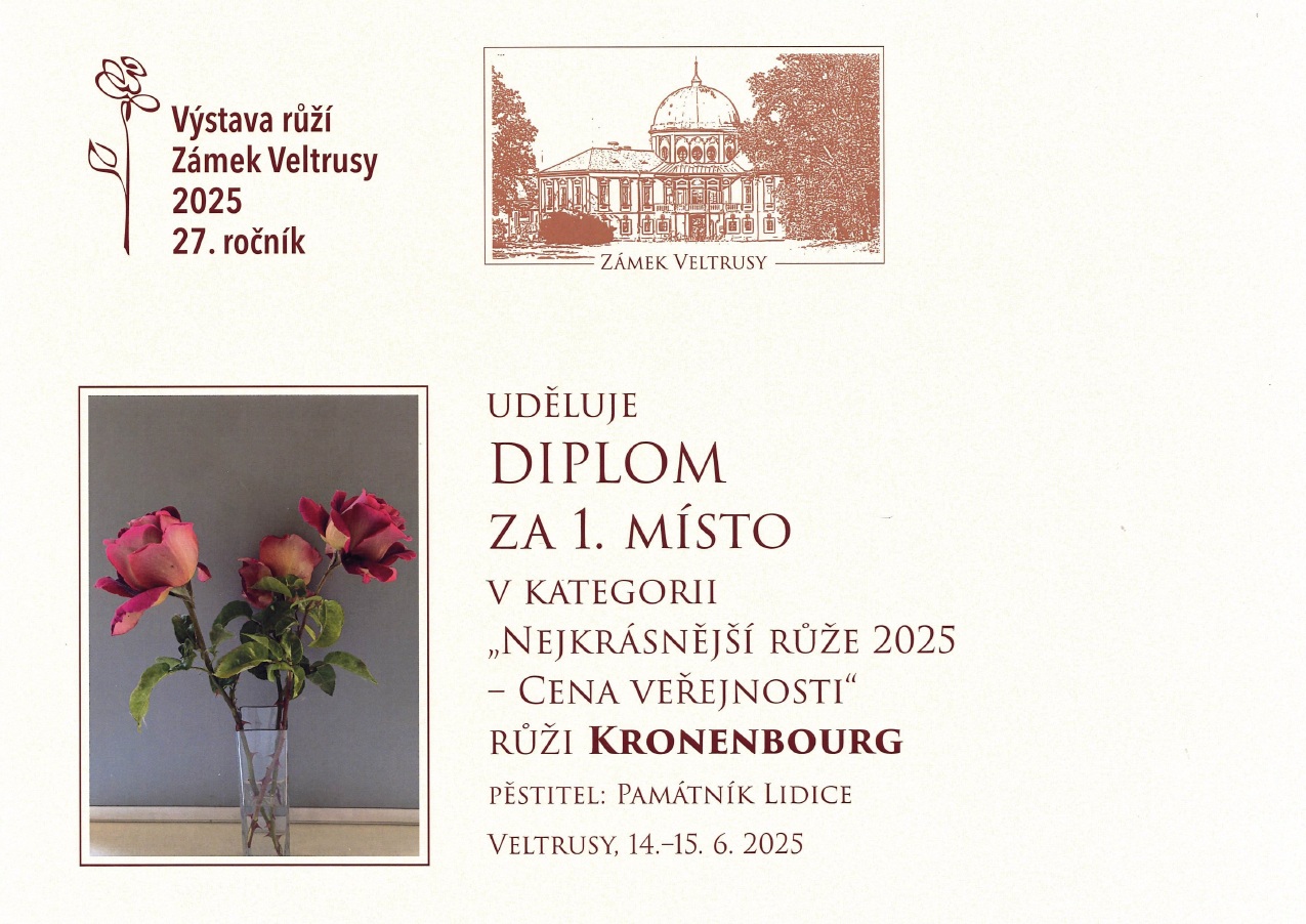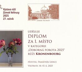 Čtyři různé odrůdy růžových keřů z Růžového sadu v Lidicích získaly prestižní ocenění v kategorii Odborná porota a Cena veřejnosti na Výstavě růží v Zámku Veltrusy.